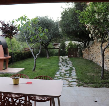 Estas casas rurales de nueva construcción están rodeadas de un amplio jardín con barbacoa incorporada y comparten una zona común en la entrada.